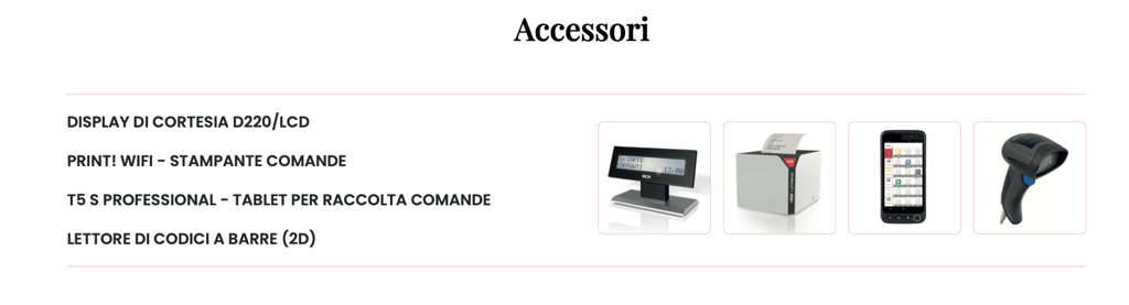 accessori: stampante comande, display di cortesia LCD, scanner per